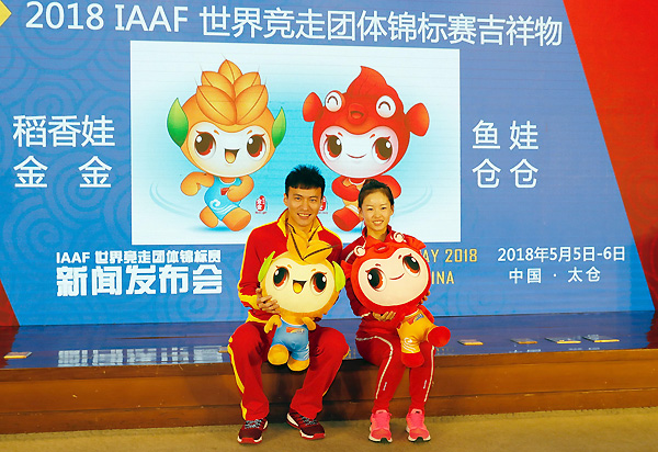 太仓市人民政府副市长顾建康随后发布了世界竞走团体锦标赛招商计划及相关活动安排。赛事吉祥物“稻米娃——金金、鱼娃——仓仓”也首次面向全球亮相。太仓素以“江南粮仓”“鱼米之乡”闻名,吉祥物以“稻米和鱼”为设计原型,结合“水纹、竞走运动服饰”元素,形成可爱的卡通形象,体现出太仓深厚的文化底蕴和鲜明的地域特色,彰显出太仓人民昂扬向上的拼搏激情,表达太仓人民的友好情怀。