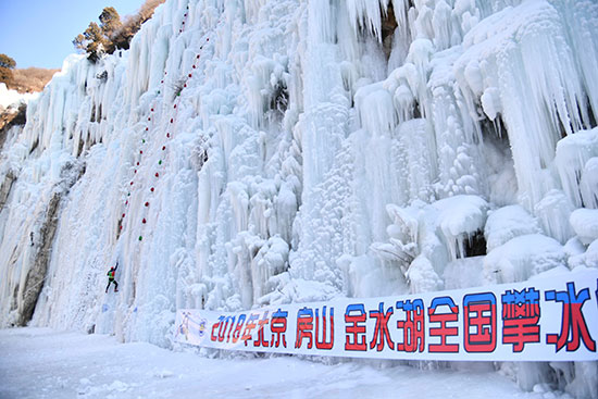 华奥星空讯 1月13至14日,由国家体育总局登山运动管理中心、中国登山协会主办,北京金水湖旅游开发有限公司承办的2018年北京房山金水湖全国攀冰锦标赛北京房山区霞云岭金水湖自然风景区举行。
