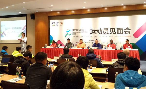 运动员见面会上,男子特邀运动员埃塞俄比亚的阿亚勒•阿贝舍罗(Ayele Abshero,个人最好成绩为2小时4分23秒)、女子特邀运动员肯尼亚的梅塞雷特•门吉古•比鲁(Meseret Mengistu Biru,个人最好成绩为2小时23分26秒)、中国的领跑代表奥运竞走冠军陈定、特邀选手费力克斯•柯迪尔(Felex Korir,配速员)、中国籍选手代表杨定宏、管油胜、李春晖、关思杨、叶伟和焦安静等与媒体记者见面。值得一提的是,梅塞雷特•门吉古•比鲁(Meseret Mengistu Biru)曾获得2017建发厦门马拉松的女子冠军。