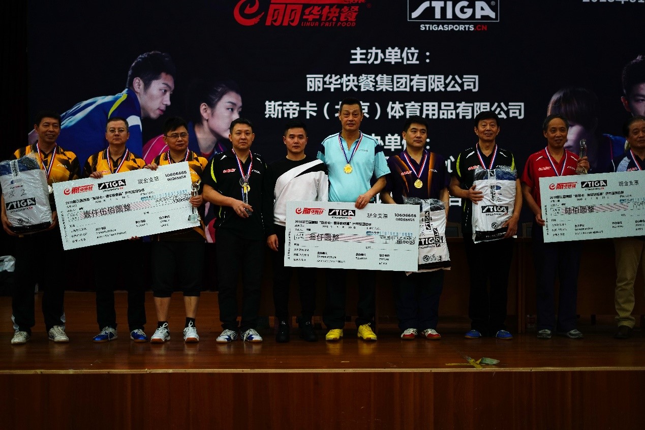 值得一提的是,主办方丽华快餐董事长蒋建平也是一位乒乓球超级爱好者。他不仅主办比赛,而且连续三年参加嘉宾组比赛,并且今年获得了第二名的好成绩!于是最后的颁奖仪式上出现了好玩的一幕:刚领完奖的蒋建平摇身一变,作为颁奖者再度上台。而对于乒乓球的热爱,丽华快餐从赞助乒超,到15年后开始赞助斯帝卡——丽华快餐杯。对于乒乓球相同的理解使得两家企业共聚一堂,带领这项深受首都球友喜爱的赛事走进了第三个年头。
